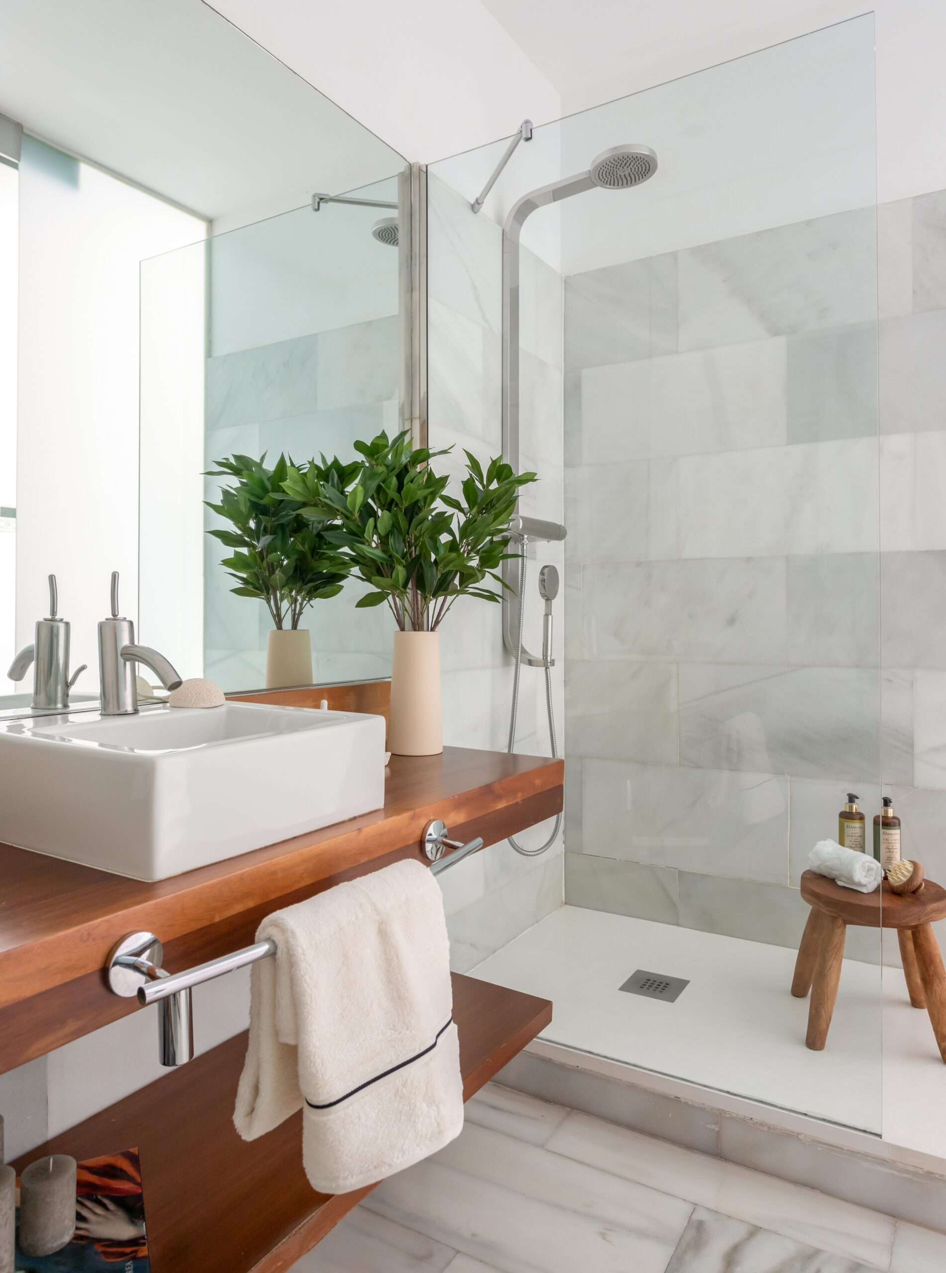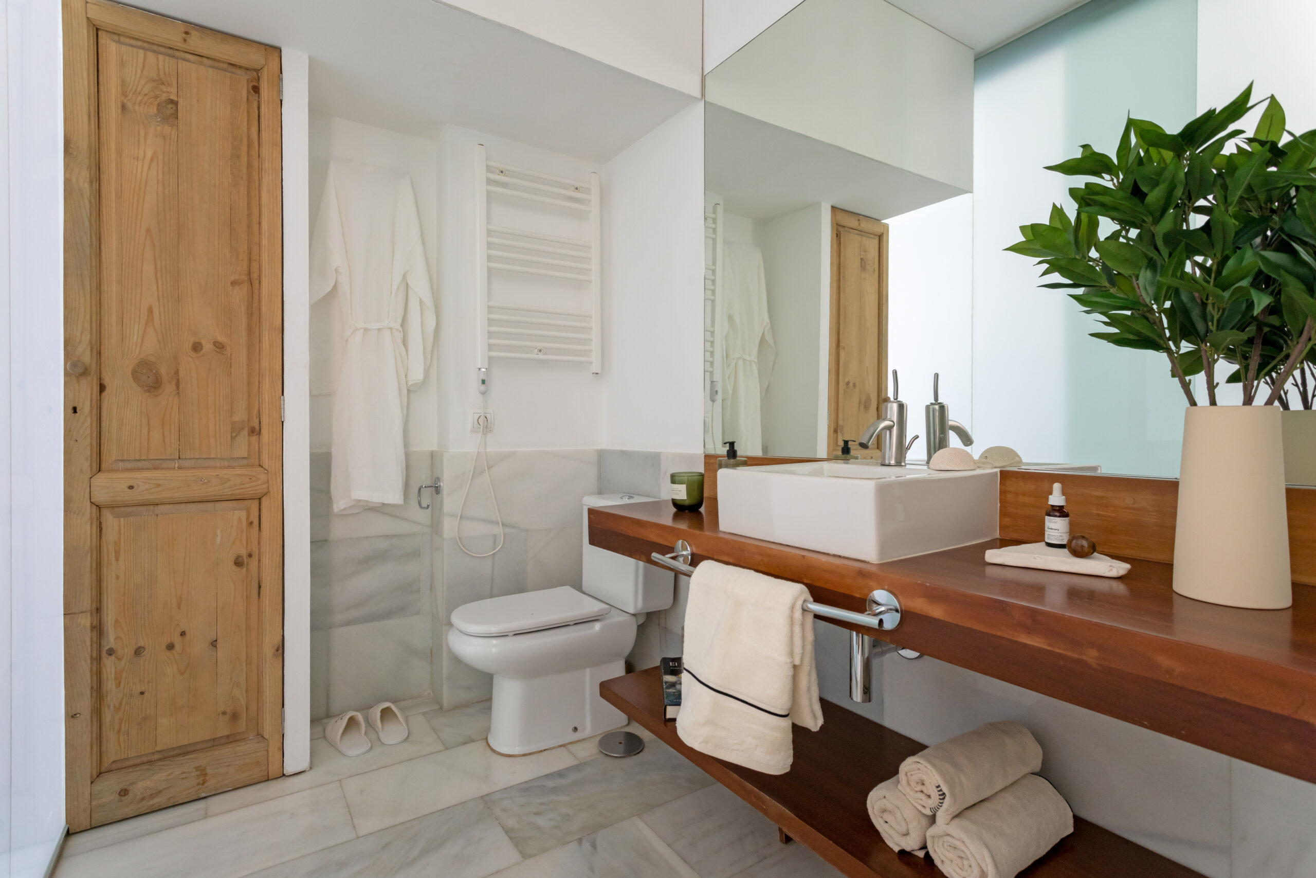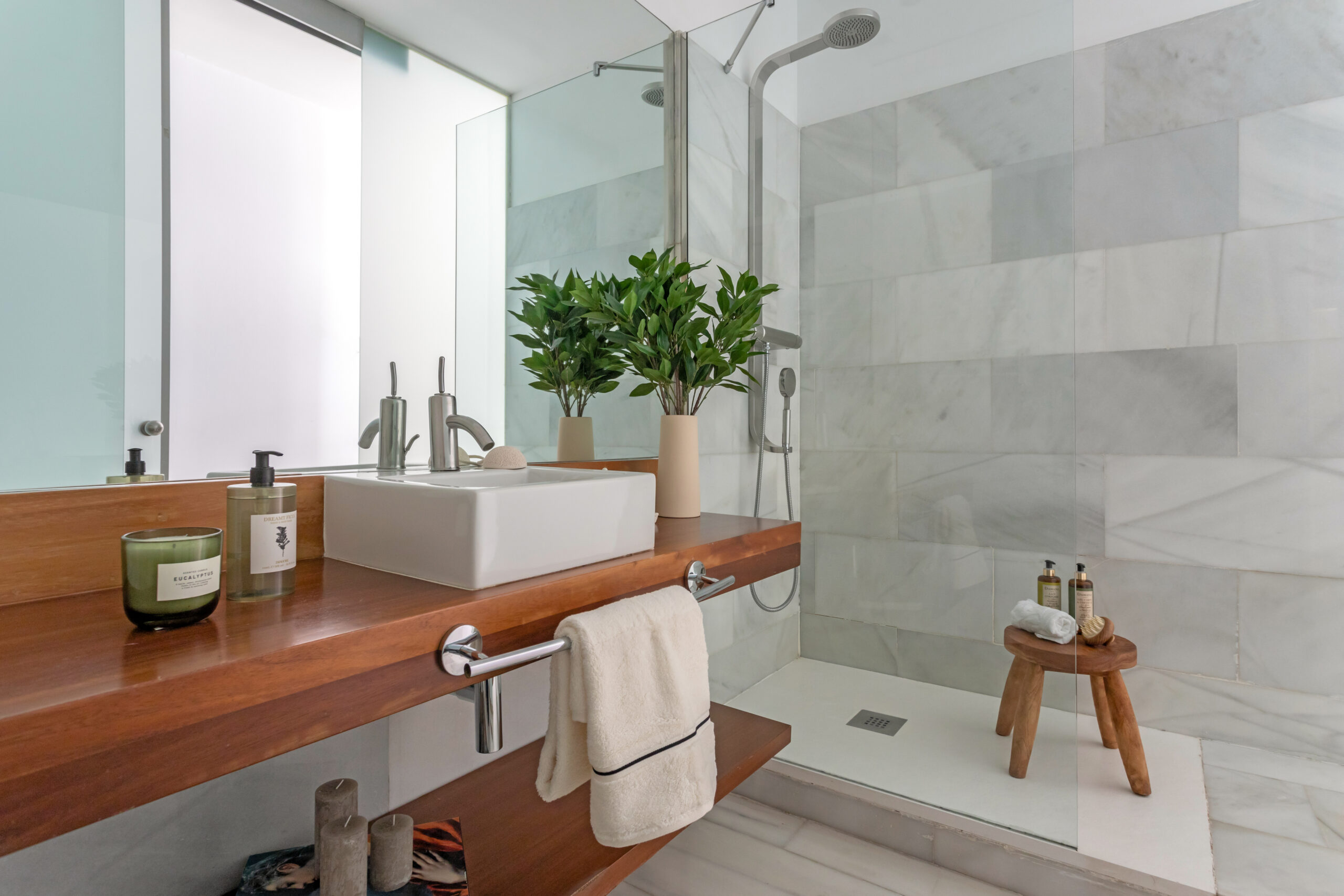 La cocina, separada del salón, cuenta con todos los equipos necesarios y las comodidades más modernas, así como una mesa/comedor donde los huéspedes pueden disfrutar de sus comidas en compañía. El baño, moderno y funcional, está equipado con una ducha con mampara, un elegante mueble de madera y un amplio espejo que completa la decoración sobria y armoniosa del apartamento.