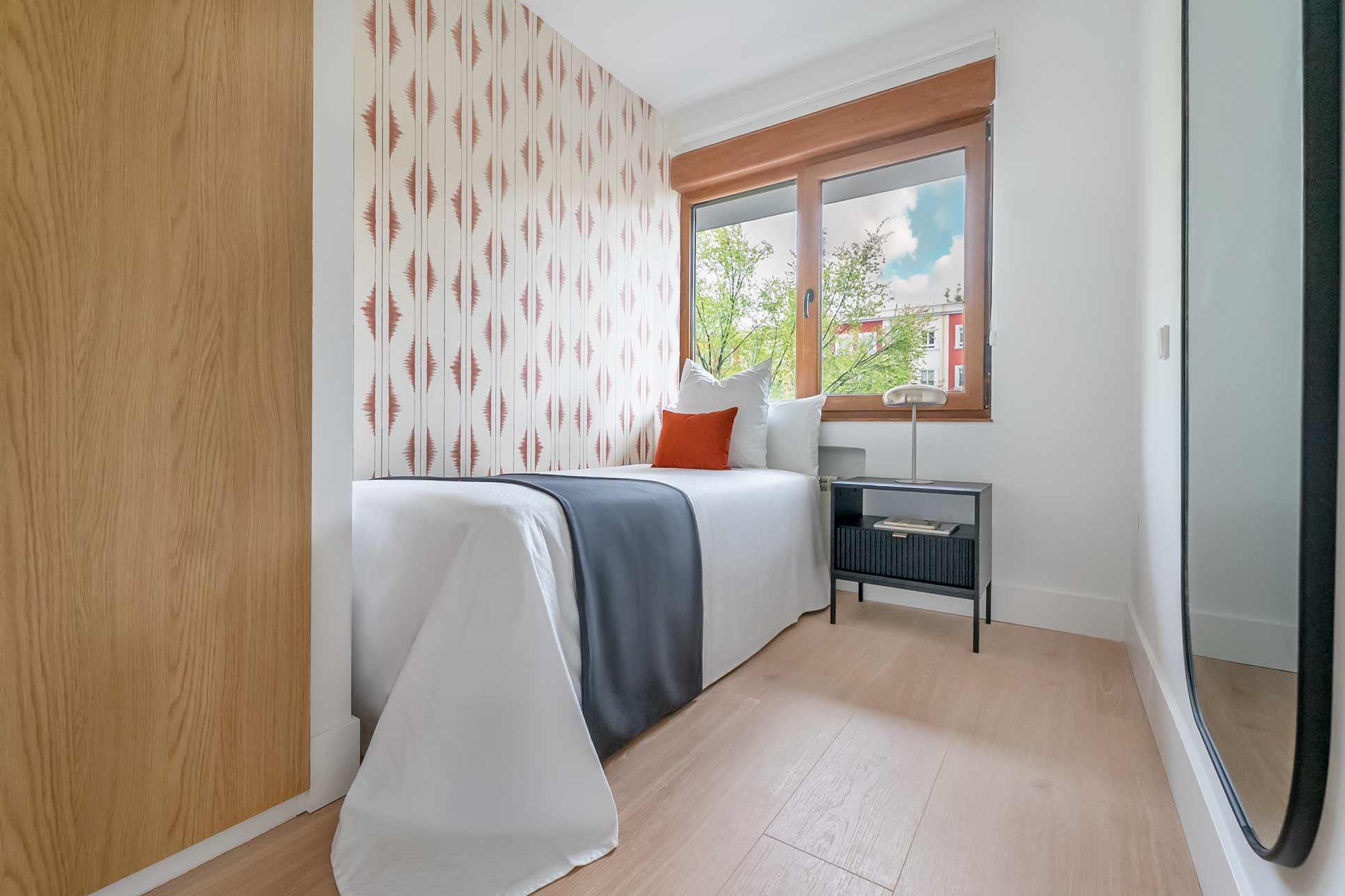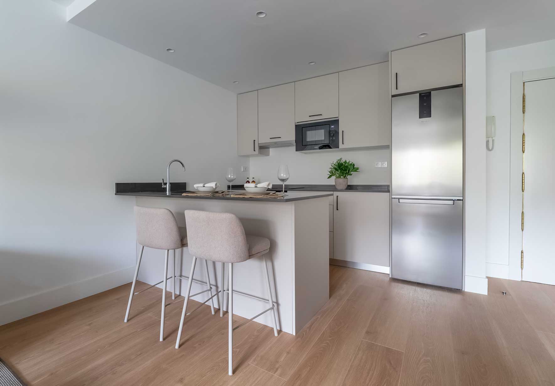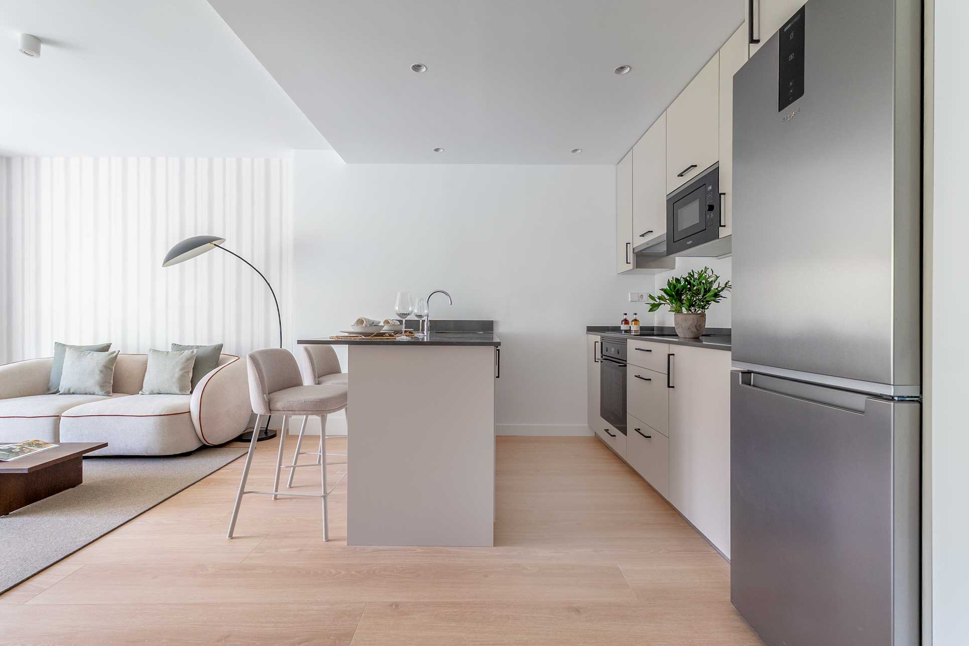 La vivienda cuenta con dos habitaciones exteriores, ambas con sus propios armarios y acabados de alta calidad. El inmueble potencia al máximo la luz natural y la sensación de amplitud en cada estancia. Uno de los grandes atractivos del piso es su terraza privada, un espacio perfecto para disfrutar del aire libre, leer o relajarse en un entorno tranquilo. El corazón de la casa es su acogedor salón-comedor con cocina americana integrada. Este espacio de concepto abierto crea un ambiente moderno y muy práctico, ideal para el día a día. La cocina, totalmente equipada, combina diseño y funcionalidad en cada detalle. La vivienda dispone además de dos baños completos con ducha, lo que aporta aún más comodidad.