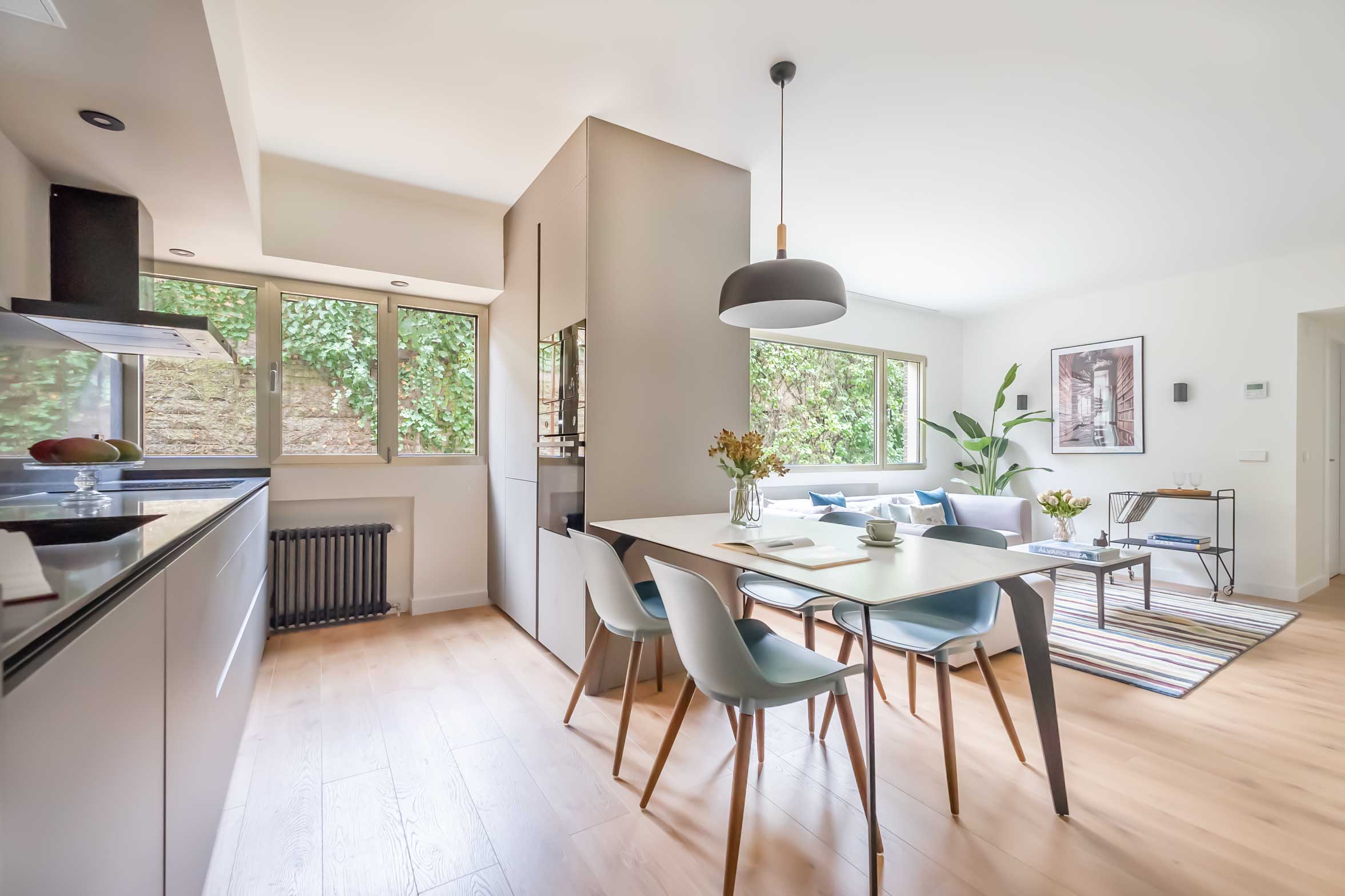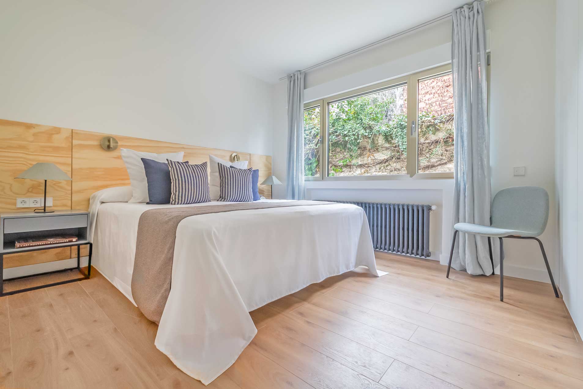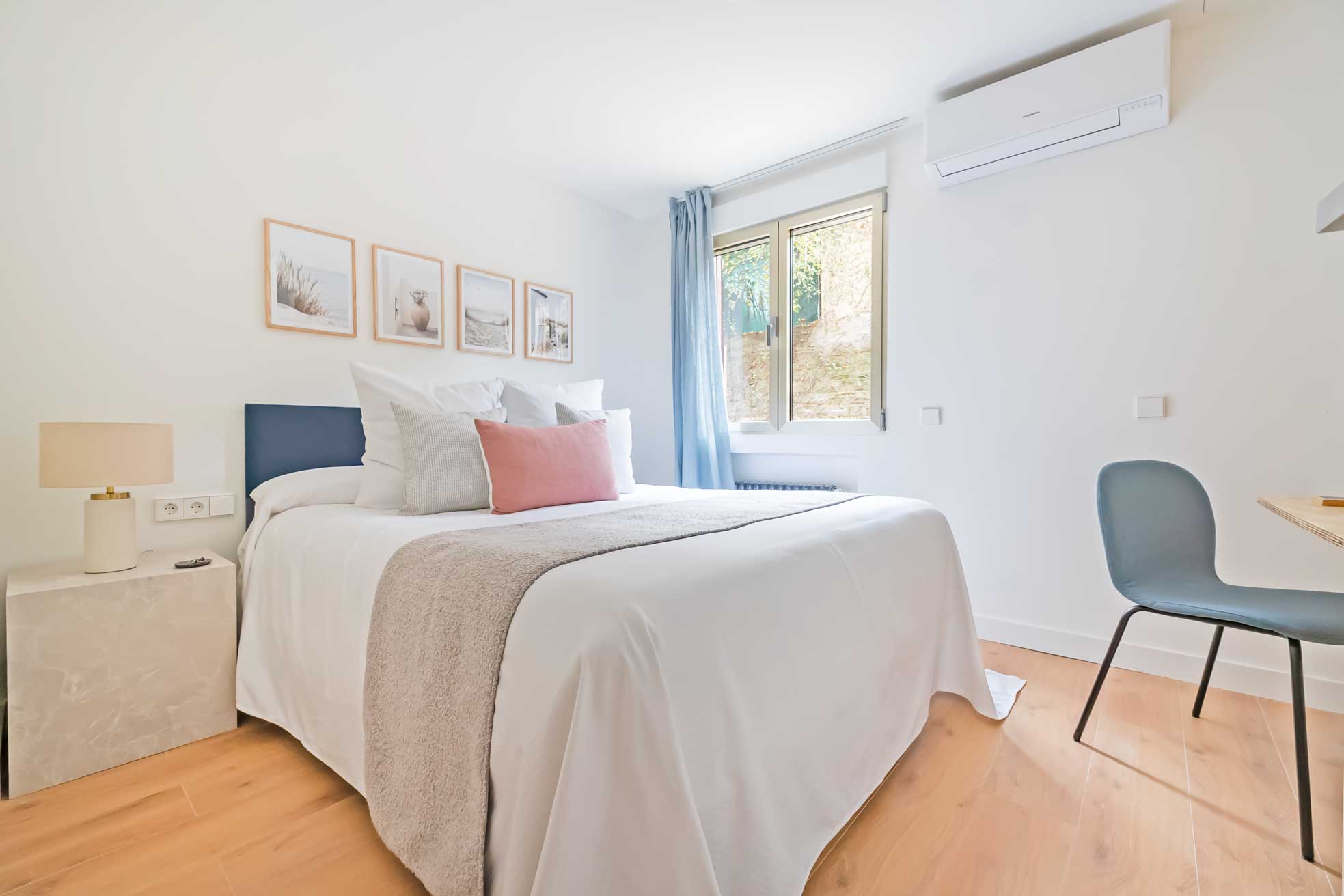 Apartamento luminoso de dos habitaciones y un baño en Chamartín, diseñado para cuatro personas. Cuenta con cocina americana moderna integrada en un salón cálido y acogedor, con grandes ventanas que inundan de luz. Totalmente equipado con WiFi, aire acondicionado y calefacción. Cerca de comercios, restaurantes y transporte público, es perfecto para estancias cortas o largas, combinando confort, diseño y una ubicación privilegiada.