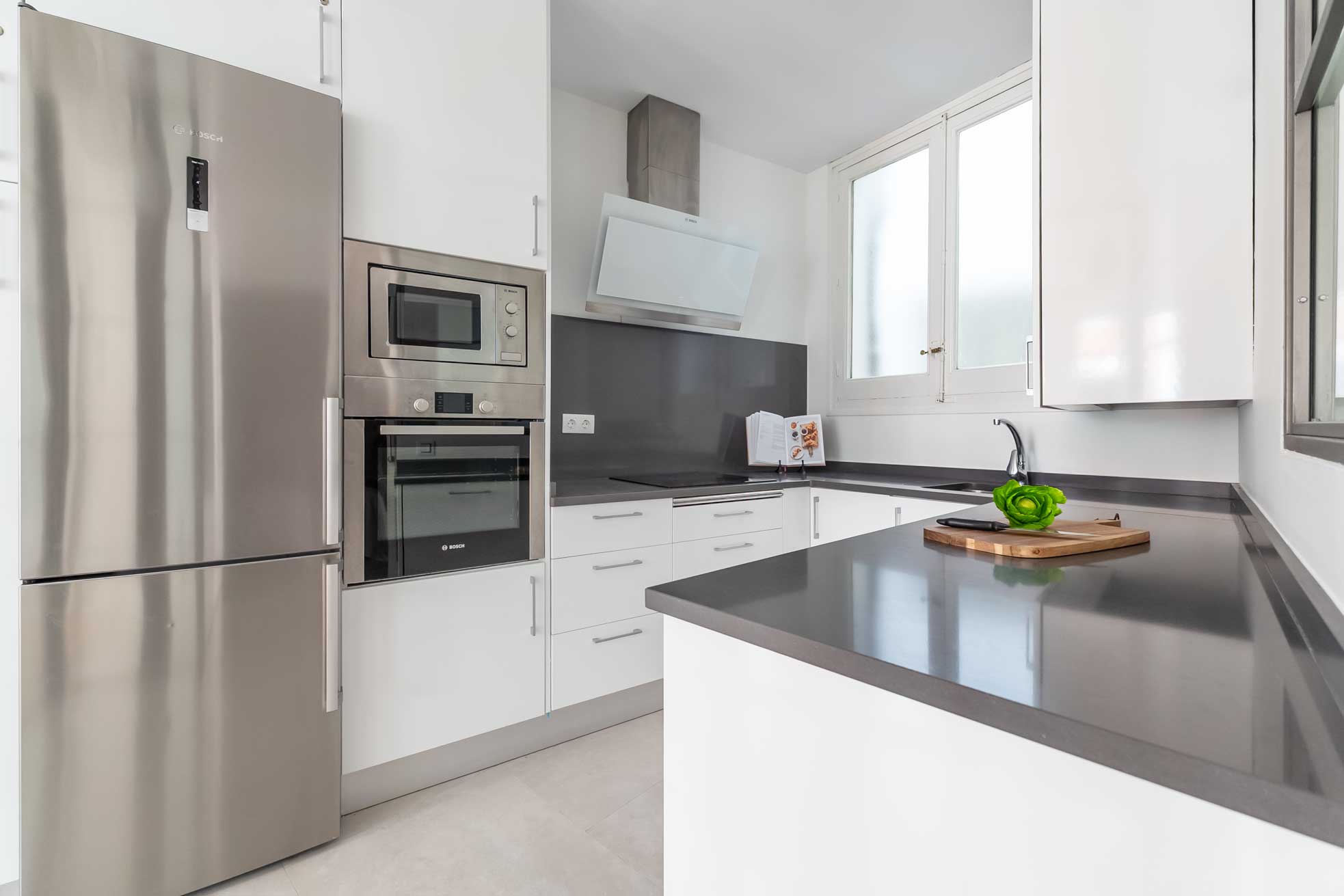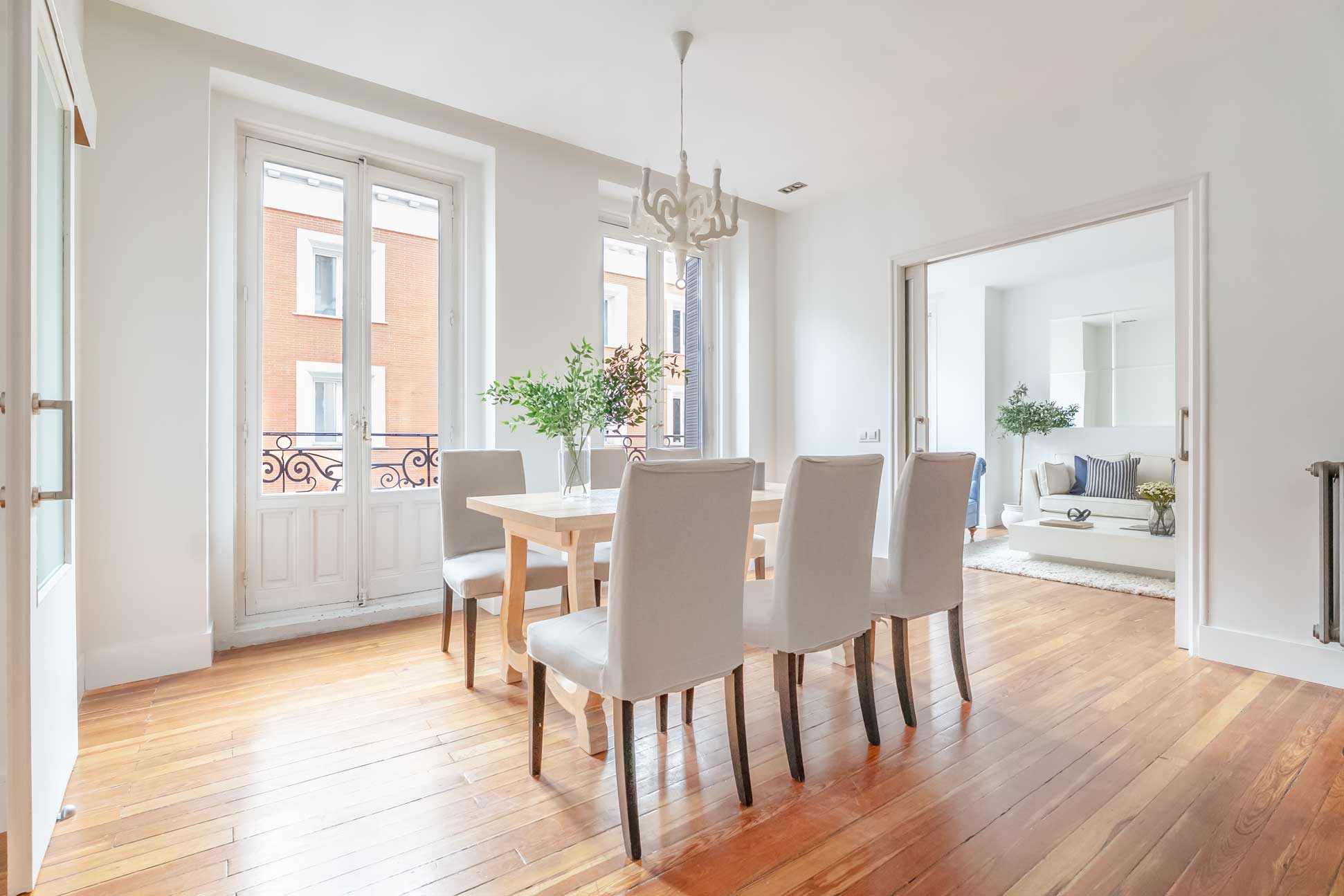 El apartamento, recientemente renovado, cuenta sala de estar con grandes ventanales, balcones franceses, suelos de parquet y una cocina contemporánea totalmente equipada.