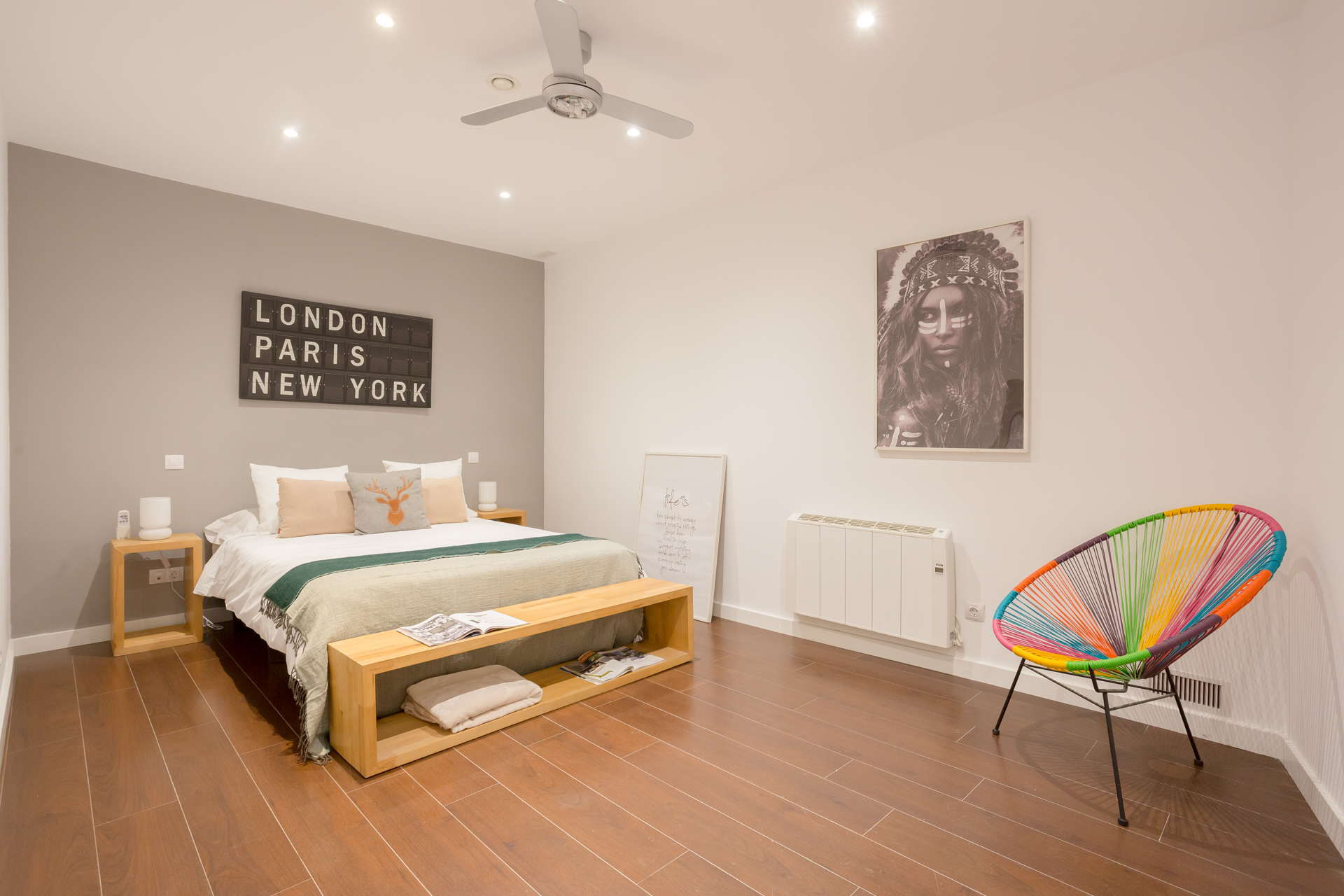 La vivienda se encuentra en la entreplanta de un bajo entreplanta/sótano y ha sido reformada recientemente.. Para acceder a la vivienda debemos bajar algunos escalones para ubicarnos en el pasillo que nos da acceso al salón. En la parte derecha de esta estancia podemos encontrar el comedor que da asiento hasta 4 personas. En esta estancia podemos encontrar una ventana superior que da al patio interior.