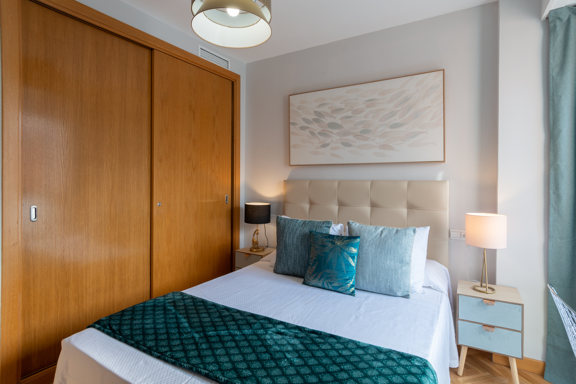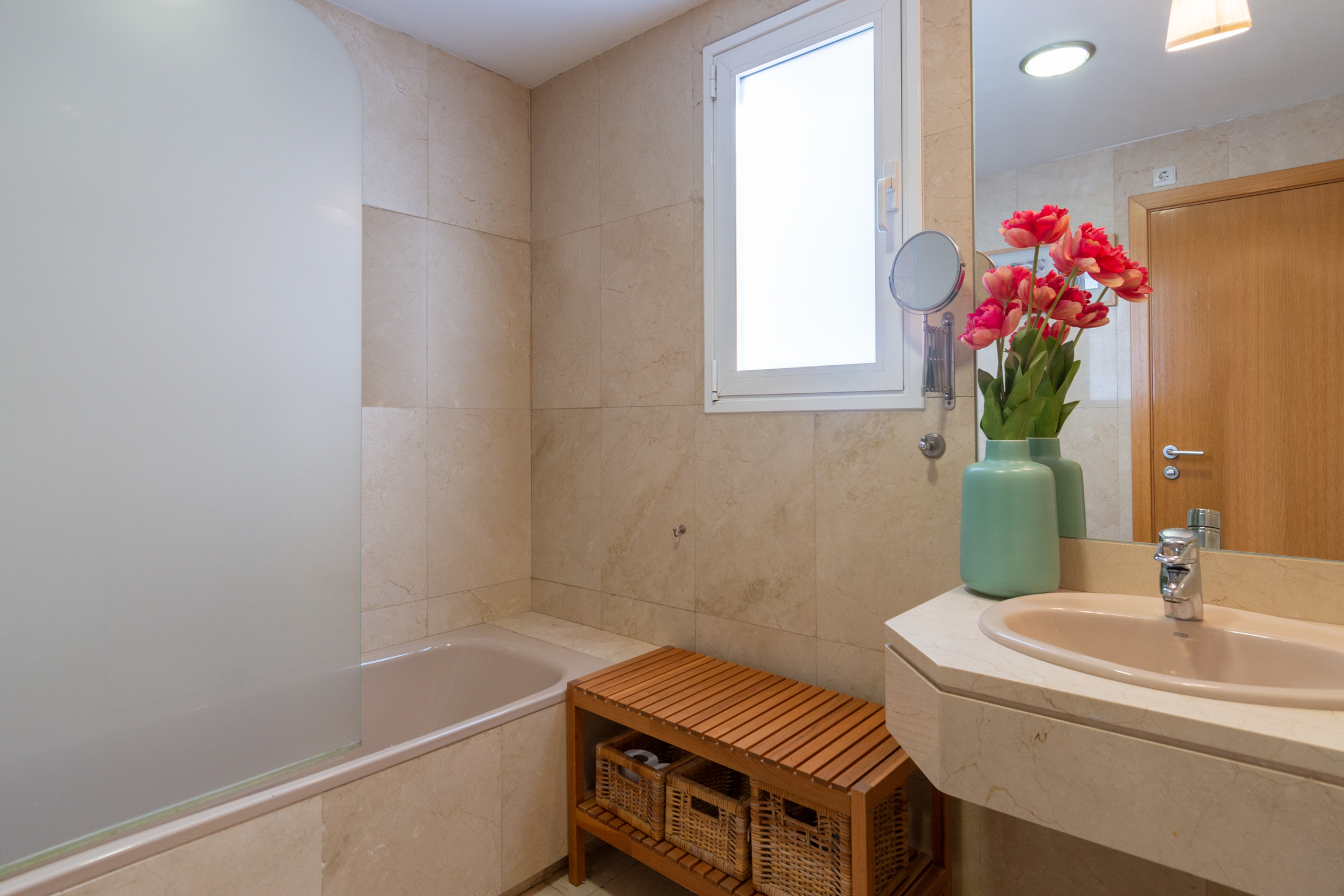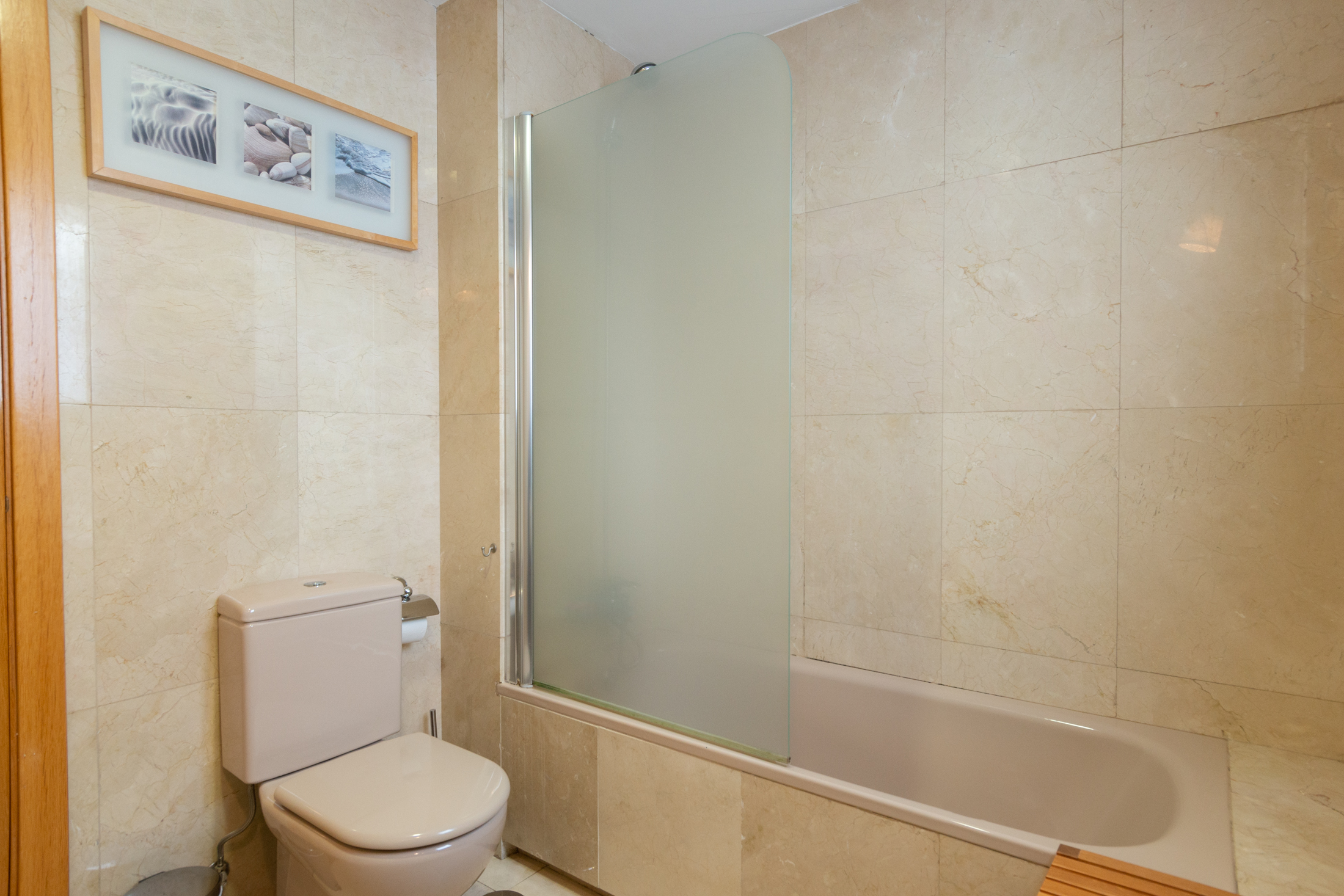 Cuenta con 1 dormitorio independiente con cama de matrimonio y armario empotrado, así como un escritorio para teletrabajo. Además, tiene un cómodo sofá cama en el salón que puede alojar a dos personas más. El baño es completo, con bañera.