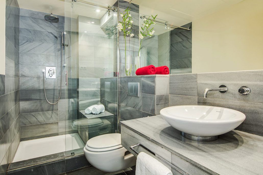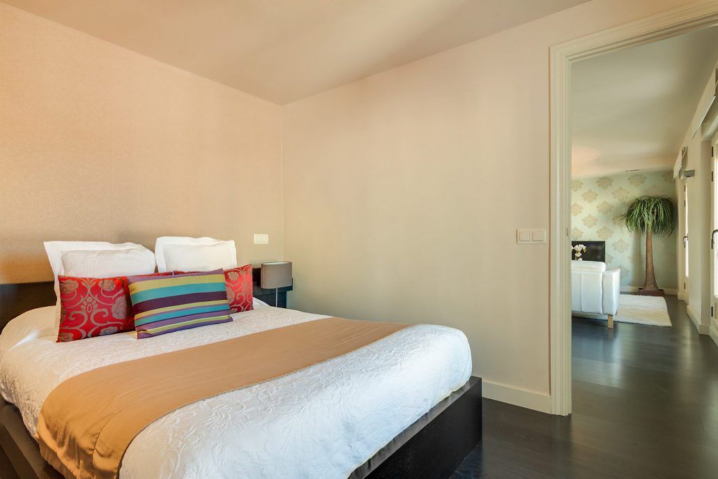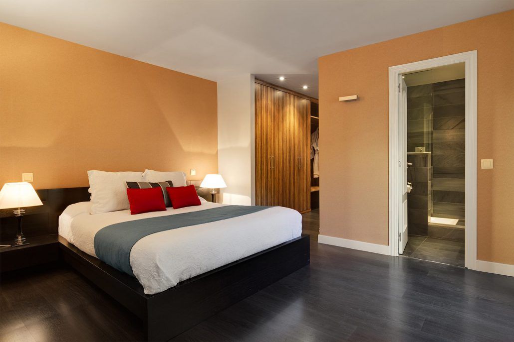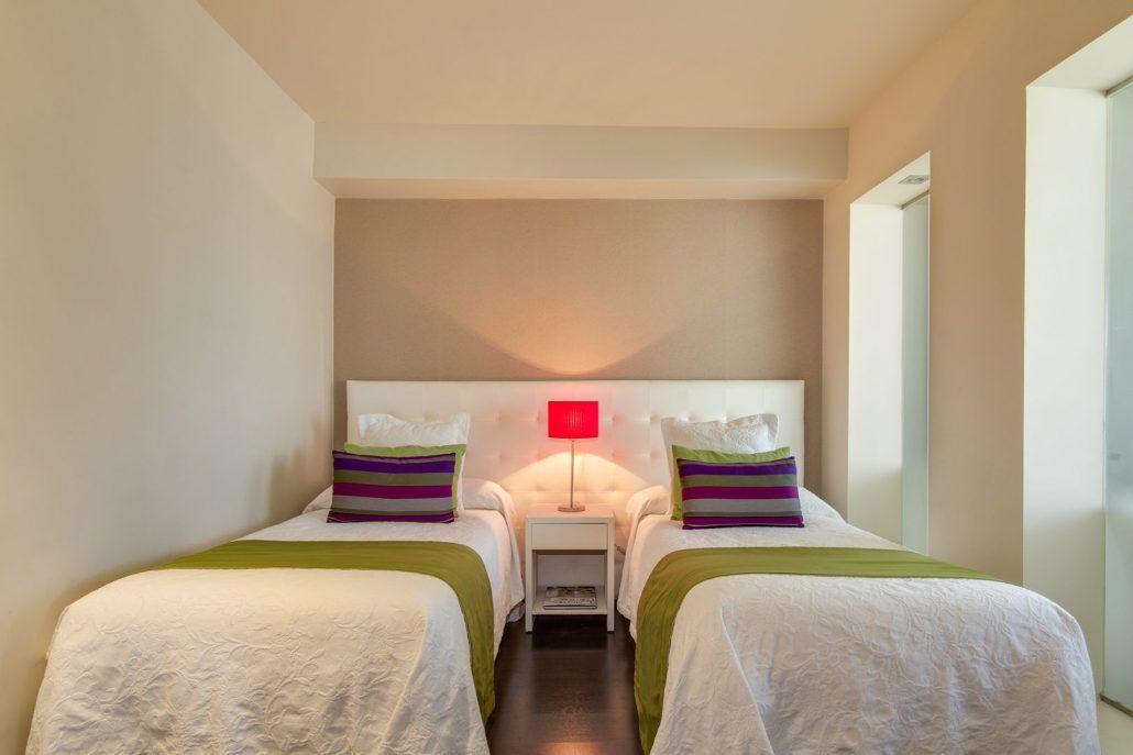El diseño de los tres dormitorios continúa el estilo del resto del piso. El dormitorio principal cuenta con baño en suite y vestidor. El segundo dormitorio cuenta con cama doble y el tercero se compone de dos camas individuales. Completa el apartamento un segundo baño completo.